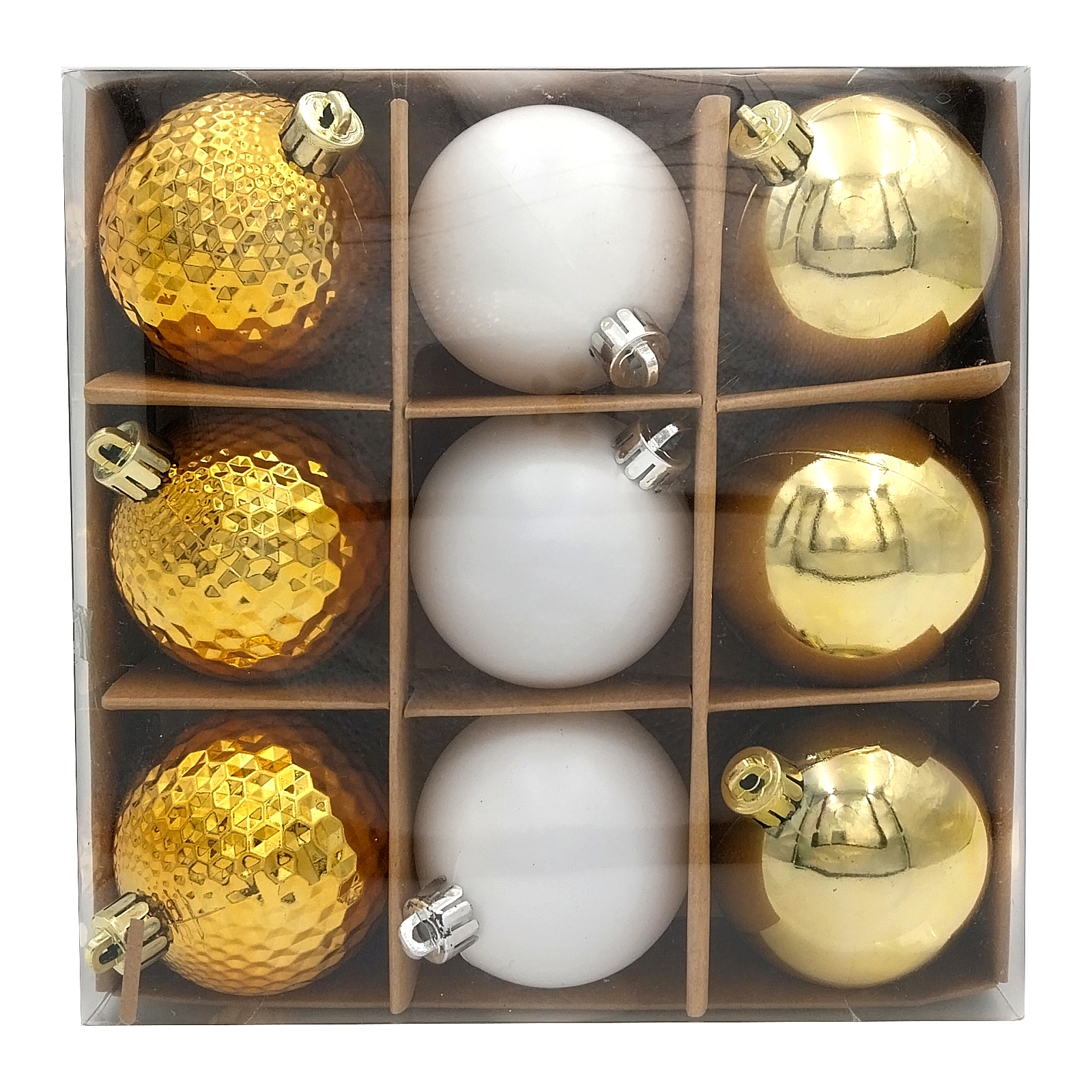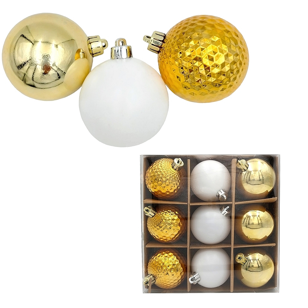 Bombki choinkowe złote białe nietłukące się 6 cm 9 sztuk