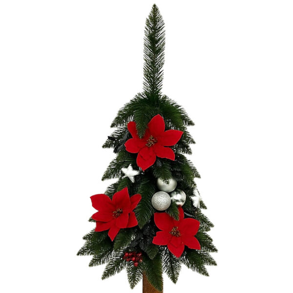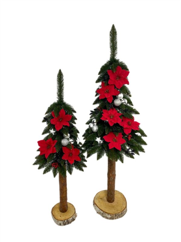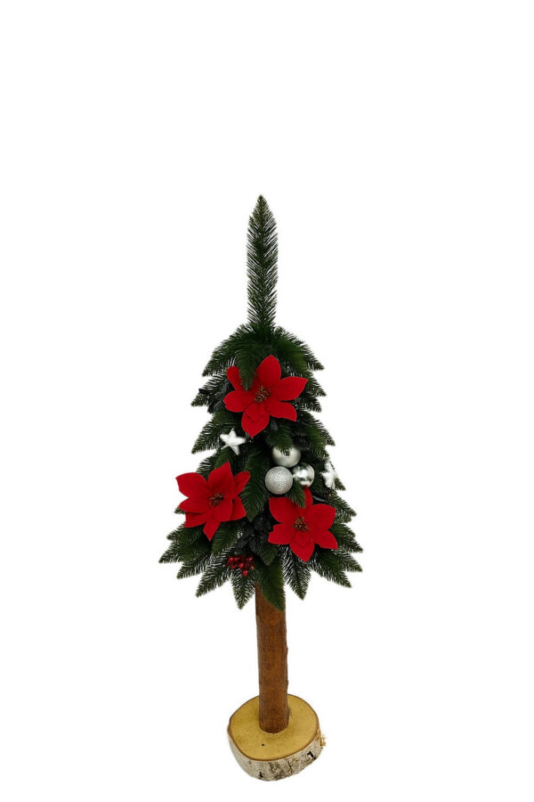 Choinka o oryginalnym wyglądzie wykonana z najwyższej jakości materiałów. Pięknie gałęzie przyozdobione czerwoną gwiazdą betlejemską w połączeniu z drewnianym naturalnym pniem nadają jej dodatkowego uroku.