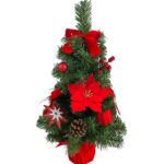 Choinka z czerwonymi ozdobami to wyjątkowy akcent, który potrafi odmienić każde wnętrze, wprowadzając do niego prawdziwą magię świąt. Jej intensywna zieleń przełamana głęboką czerwienią dekoracji przyciąga wzrok i dodaje elegancji każdej aranżacji. Mimo niewielkich rozmiarów, ta dekoracja emanuje świątecznym urokiem i ciepłem, tworząc przytulny klimat w salonie usługowym, biurze czy sypialni. Dzięki doskonałemu wykonaniu i dbałości o każdy detal, choinka z czerwonymi dodatkami zachwyca naturalnym wyglądem i harmonijnym połączeniem kolorów. Subtelne ozdoby w odcieniach czerwieni dodają jej blasku i charakteru, podkreślając świąteczny nastrój. Warto zwrócić uwagę na to, że tak przemyślana kompozycja nie wymaga dodatkowych dekoracji – sama w sobie stanowi pełną, efektowną ozdobę. Jeśli lubisz spójne aranżacje w świątecznym stylu, zobacz nasze choinki dekorowane, które doskonale współgrają z tym modelem i pozwalają stworzyć spójną, elegancką kompozycję świąteczną.