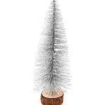 4. Choinka sztuczna na pniu z brokatem zielona srebrna 14 cm