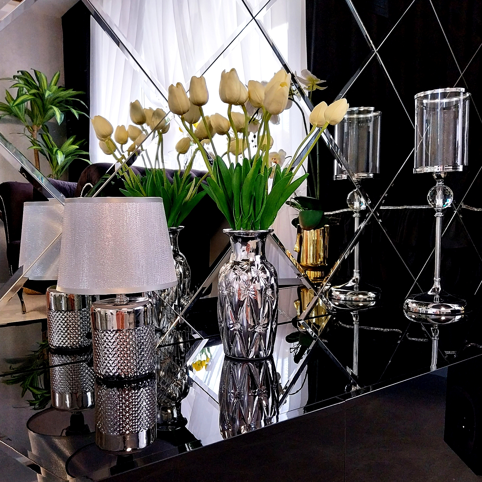 • Klasyczne srebro nadaje eleganckiego wyglądu przez co lampa doskonale komponuje się z każdym wnętrzem