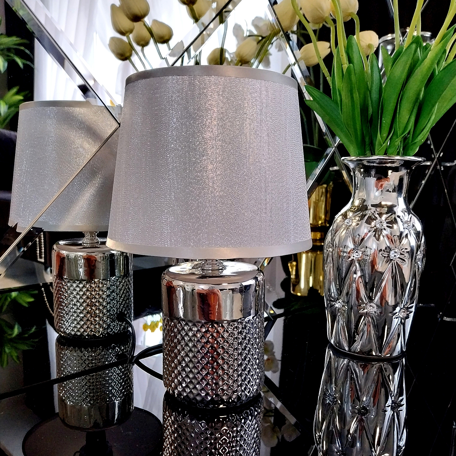 Lampa nocna nowoczesna srebrna stołowa glamour 27 cm