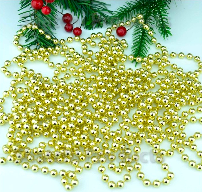 Łańcuch na choinkę koraliki złote 10 m kuleczki