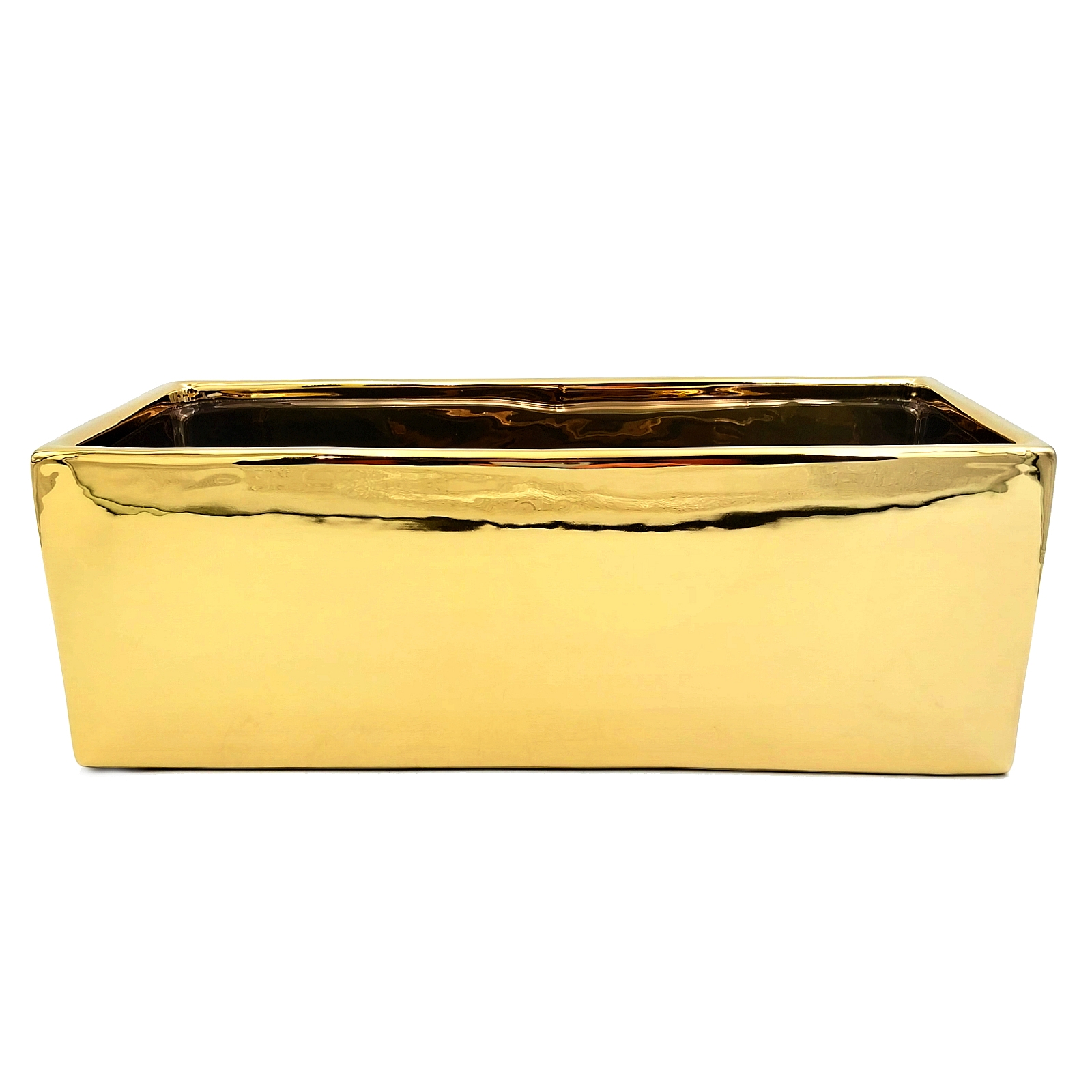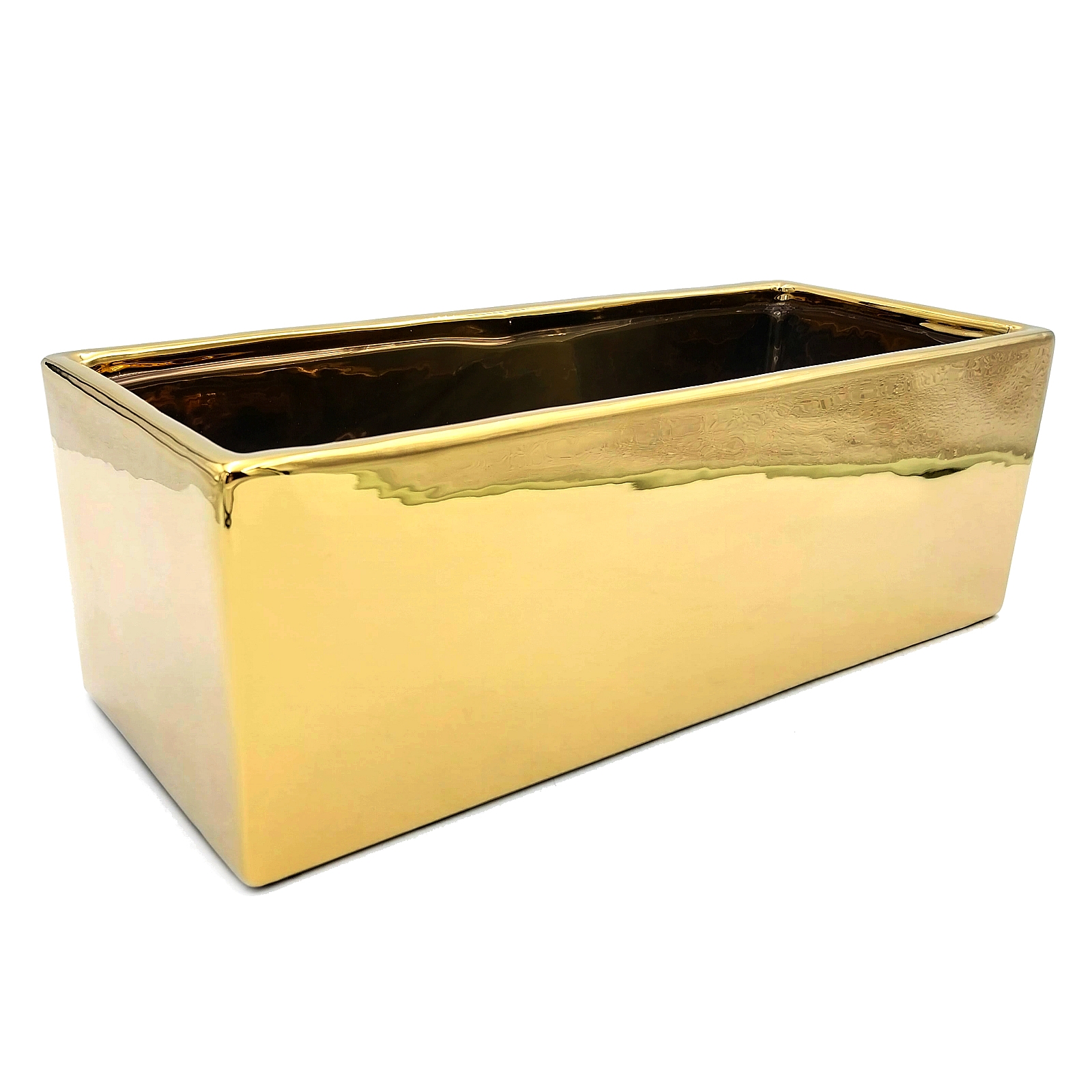 4. Osłonka ceramiczna złota prostokątna DUŻA na kwiaty doniczka 35 cm