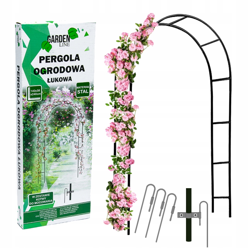 Pergola metalowa łuk 240 cm + kotwy gratis