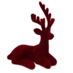 Renifer leżący szary flokowany jelonek dekoracyjny 15 cm
