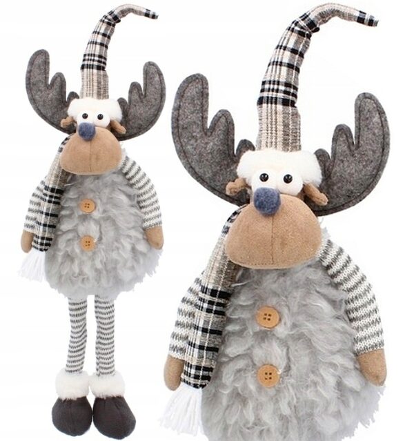 Renifer świąteczny dekoracyjny szary pluszowy skrzat 75 cm