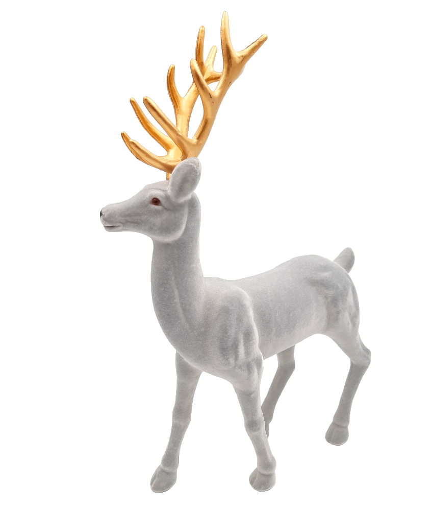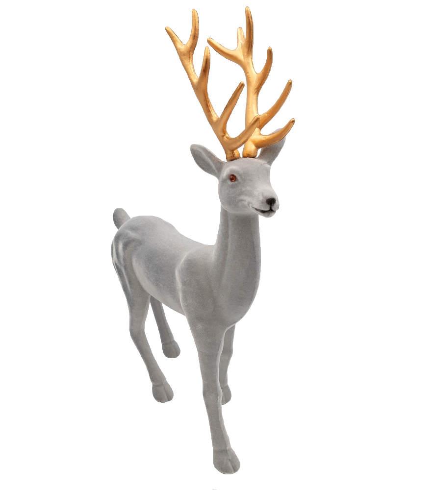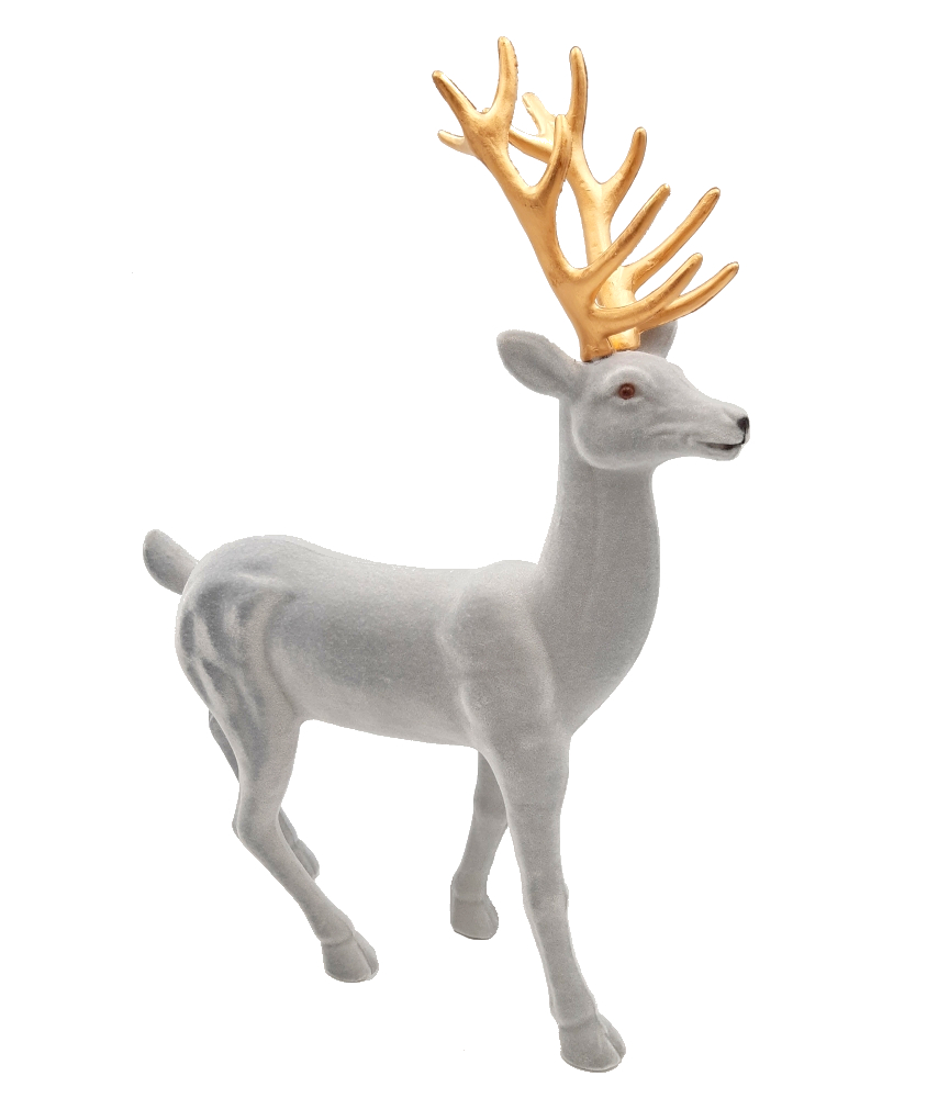 4. Renifer świąteczny ze złotym porożem szary glamour 46 cm duży