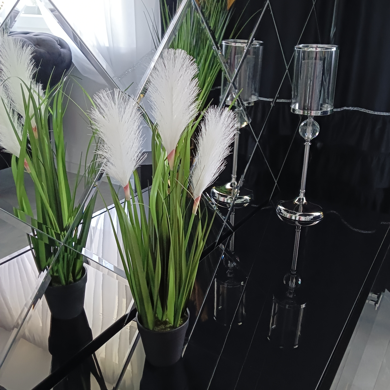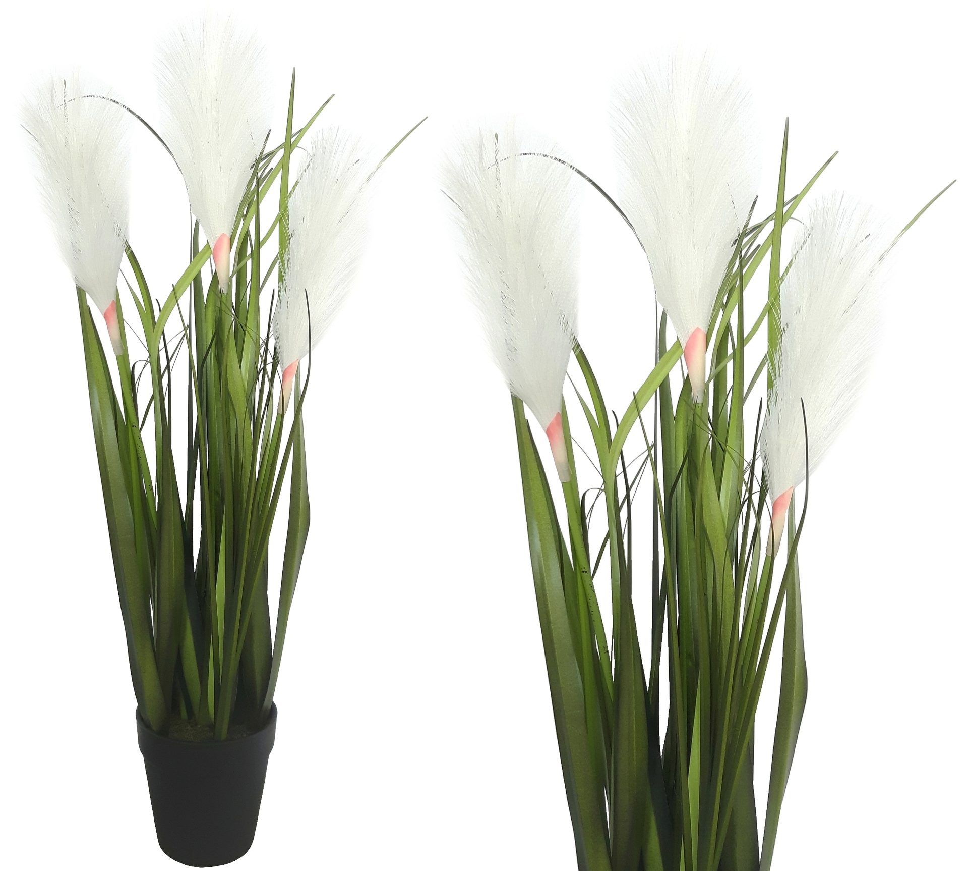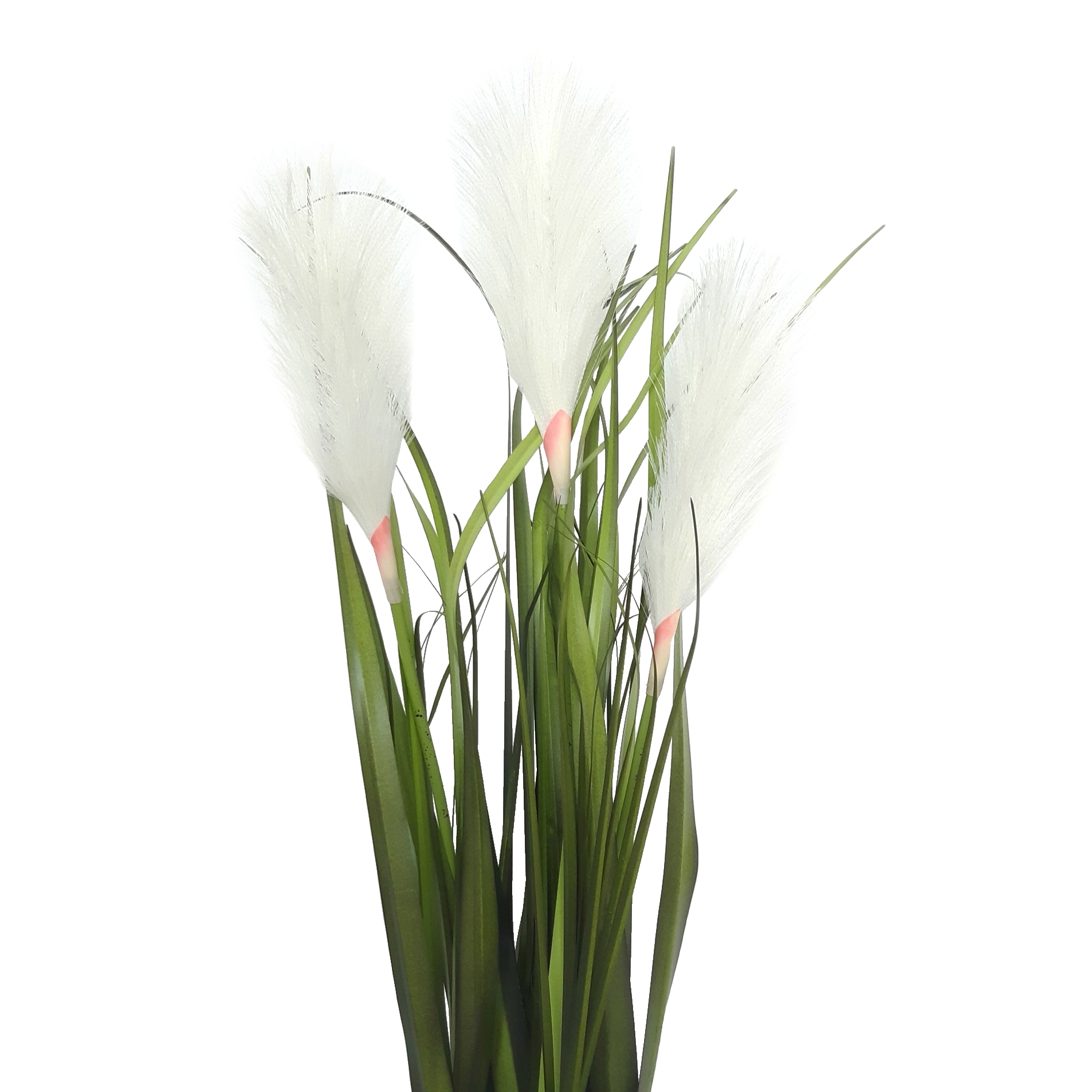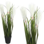 Sztuczna trawa pampasowa w doniczce z białymi kwiatami gęsta 55 cm