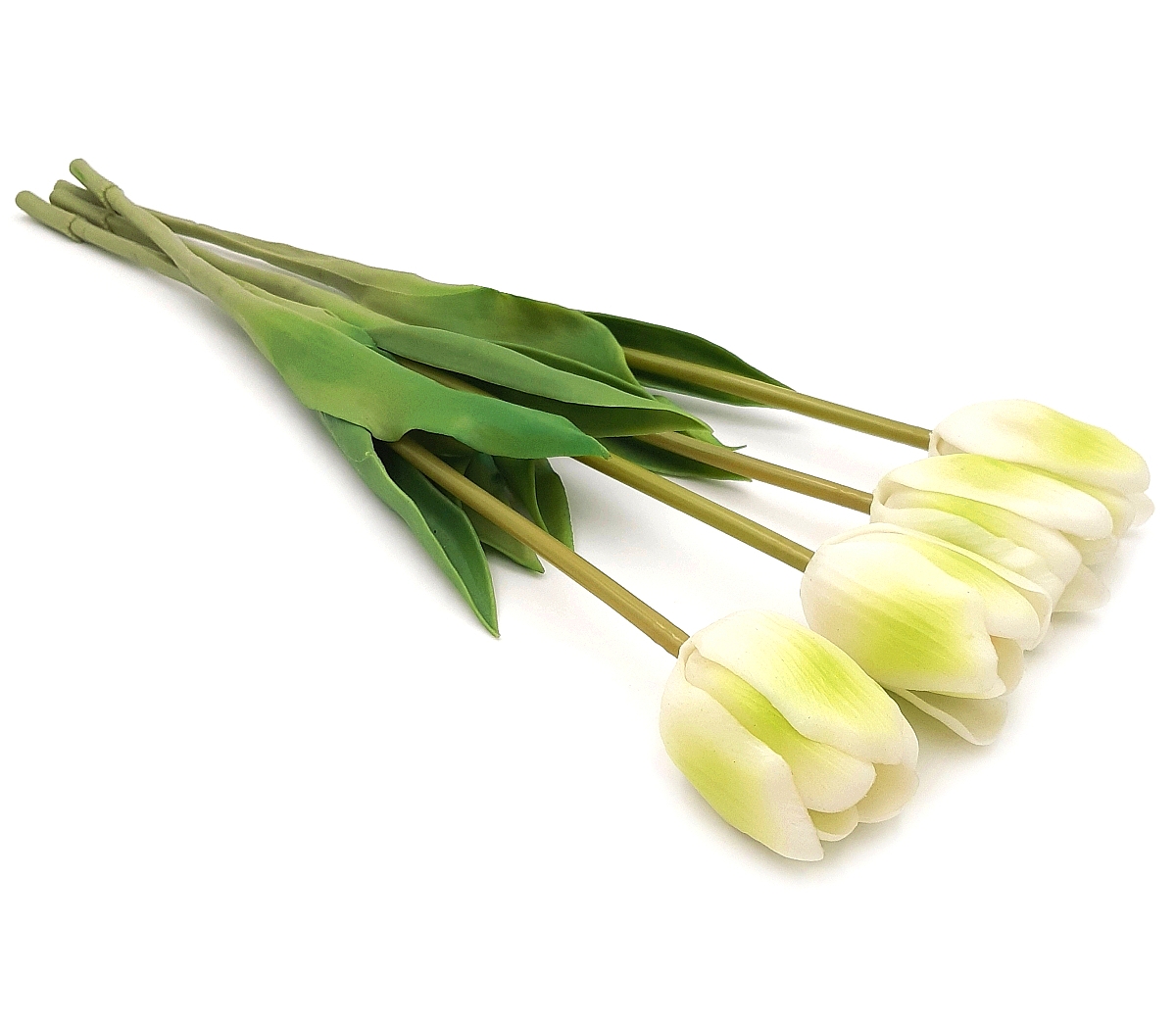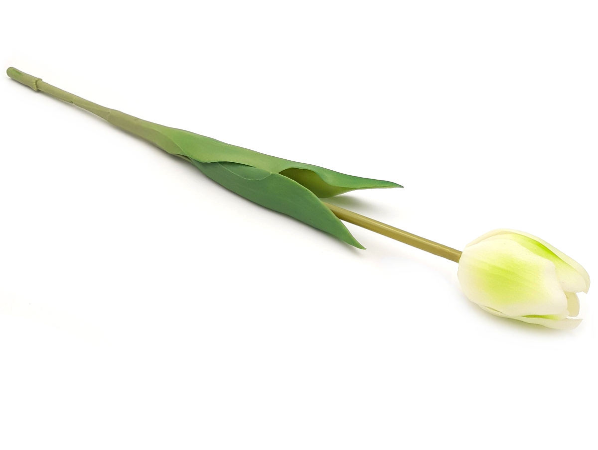 4. Tulipan silikonowy jak żywy biało zielony gumowy 44 cm rozkwitnięty