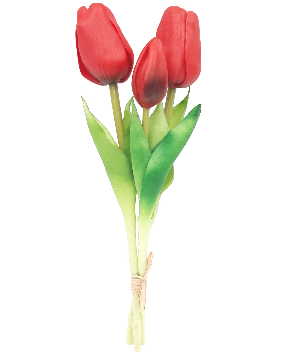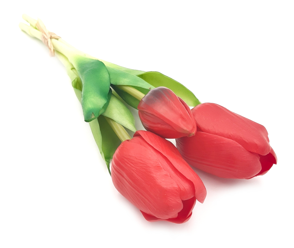 4. Tulipany silikonowe jak żywe czerwone bukiet 3 sztuk gumowe 29 cm