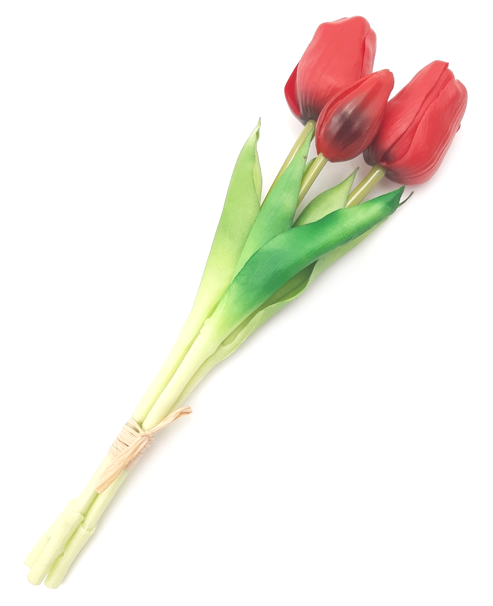 Tulipany silikonowe jak żywe czerwone bukiet 3 sztuk gumowe 29 cm