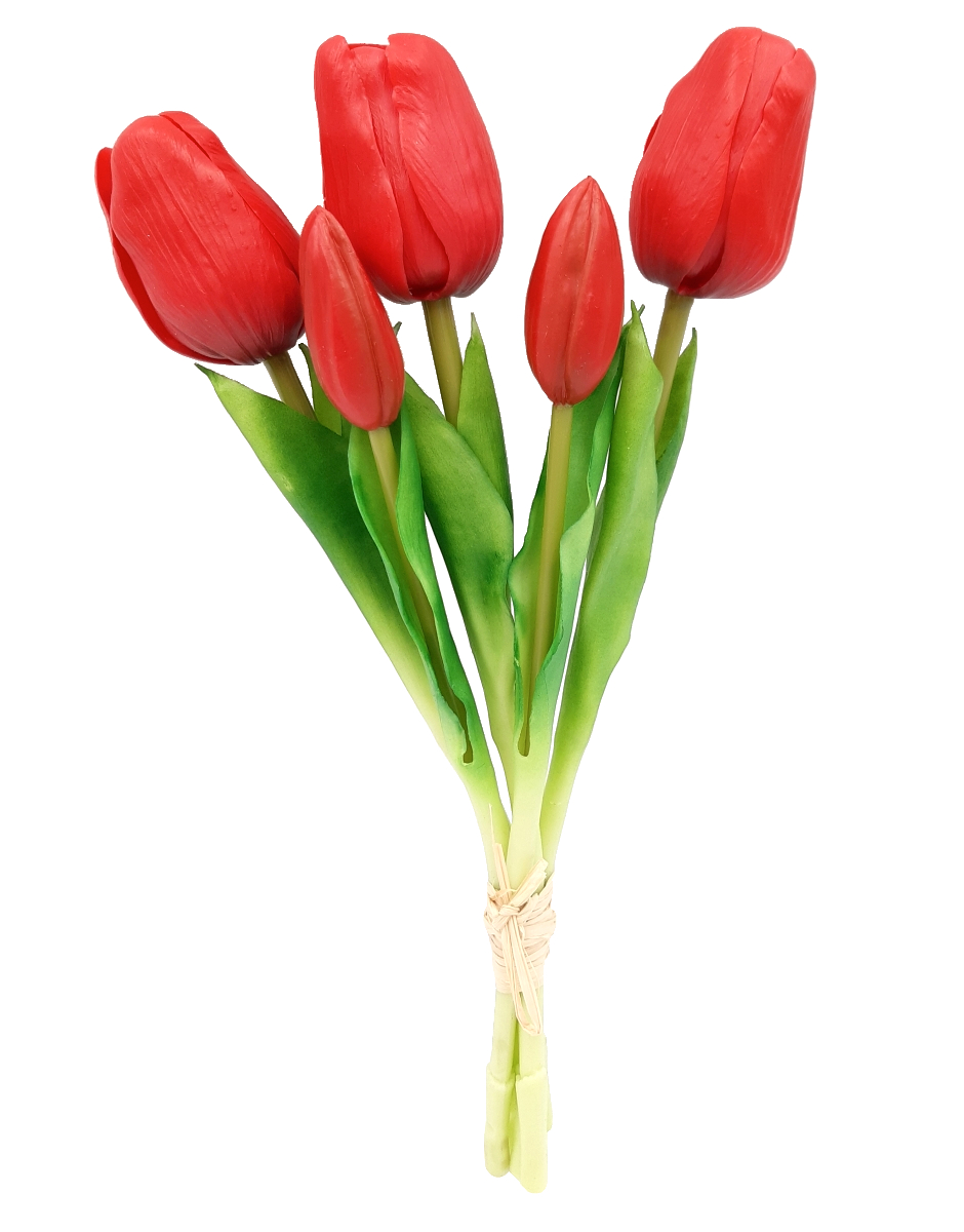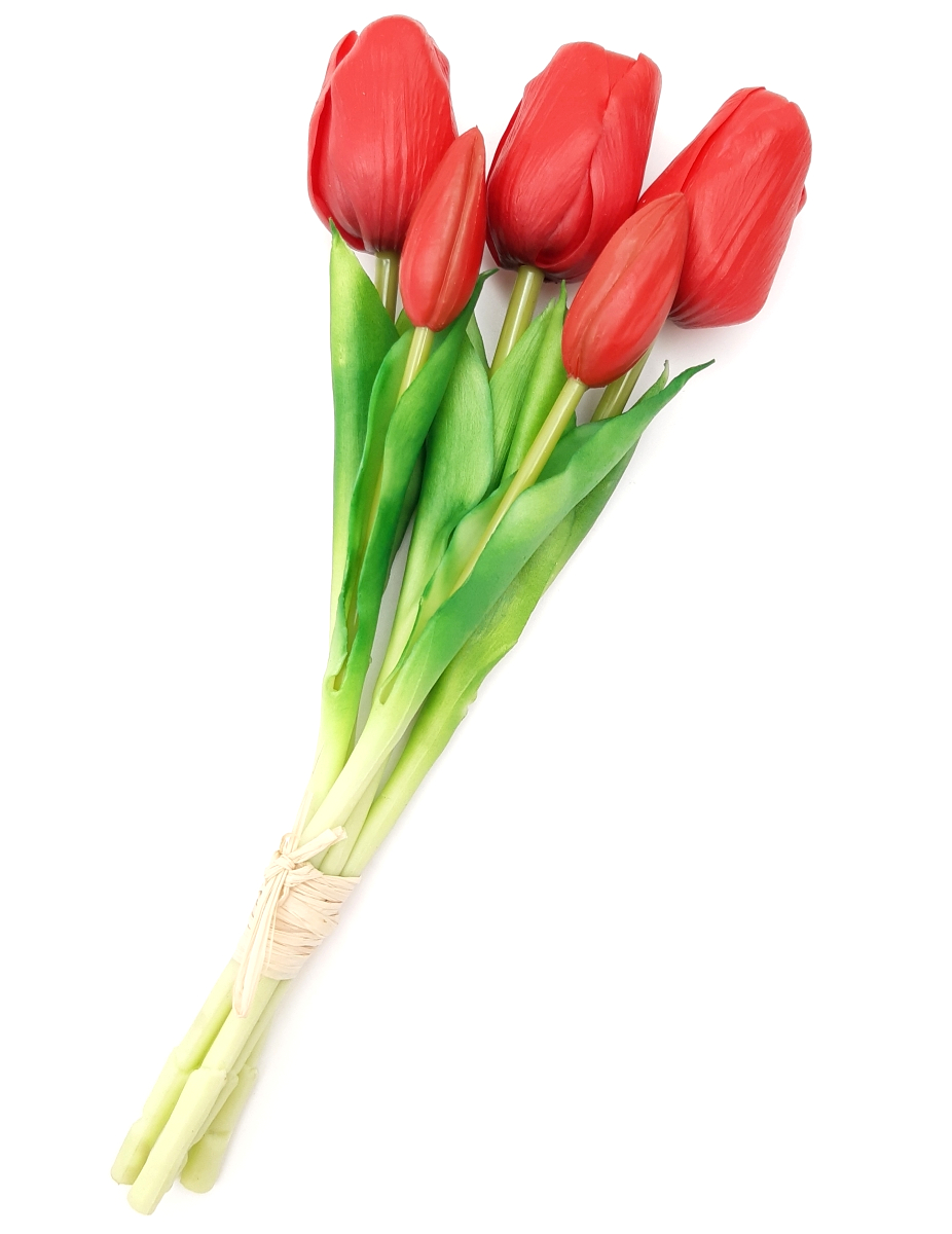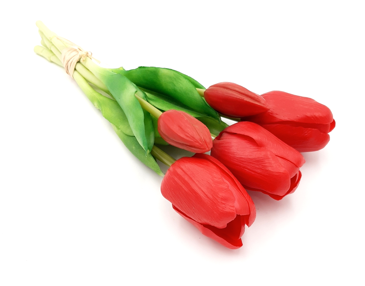 Tulipany silikonowe jak żywe czerwone bukiet 5 sztuk gumowe 29 cm