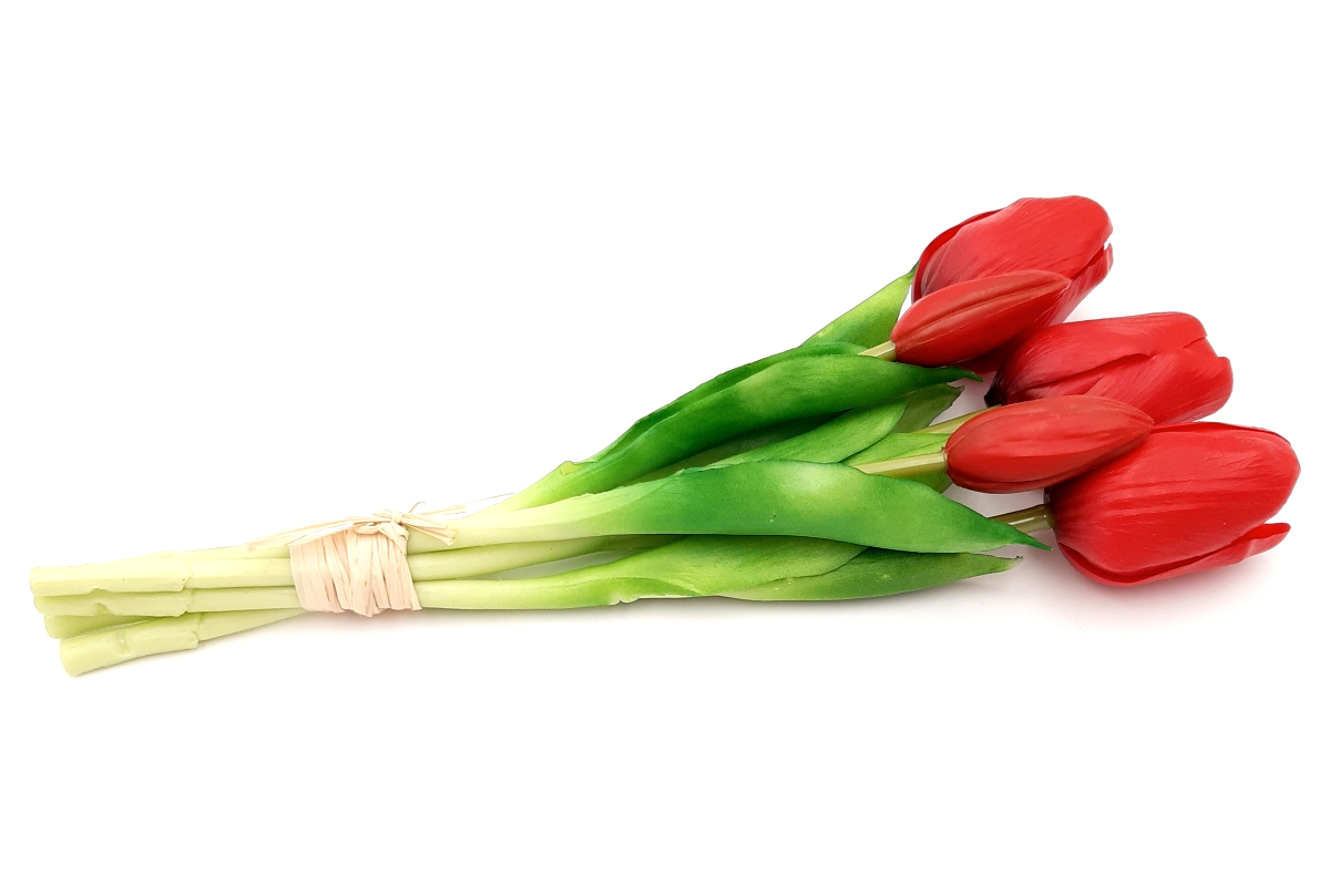 4. Tulipany silikonowe jak żywe czerwone bukiet 5 sztuk gumowe 29 cm