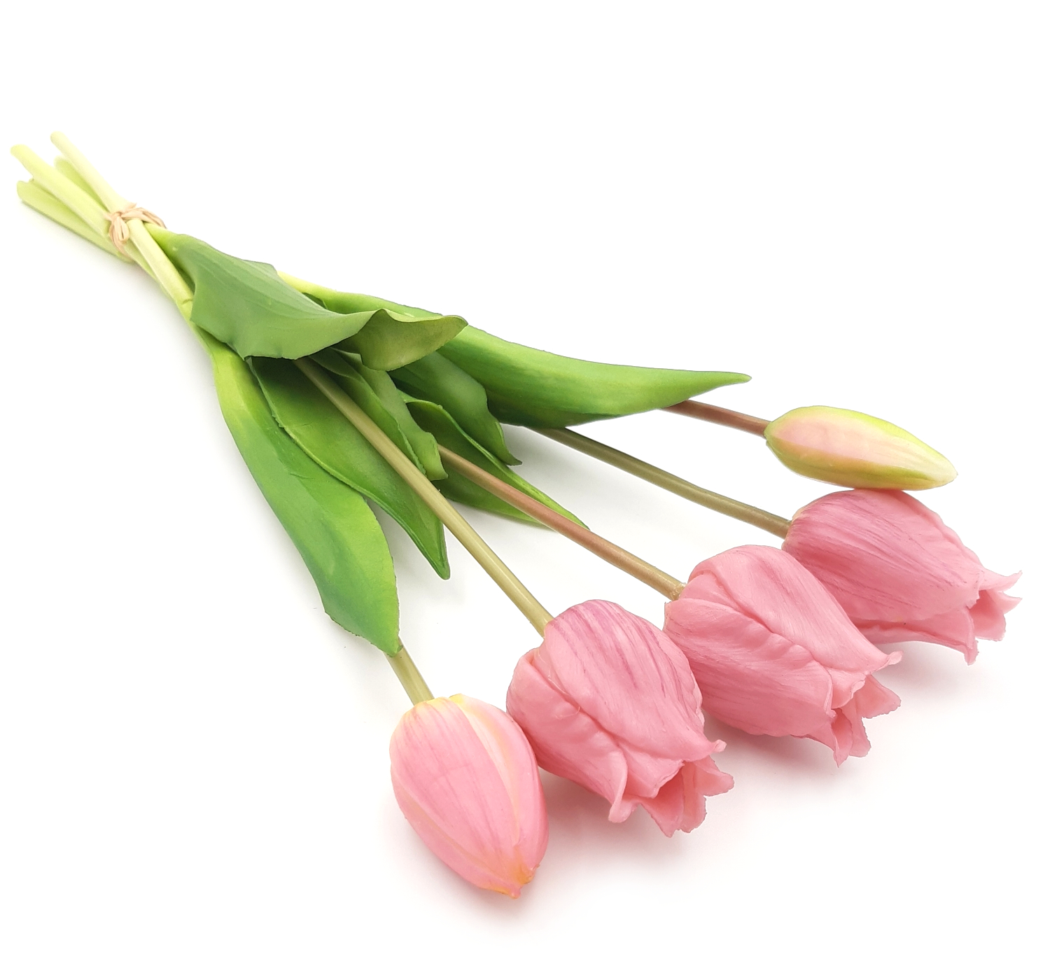 4. Tulipany silikonowe jak żywe liliowe bukiet 5 sztuk gumowe 39 cm