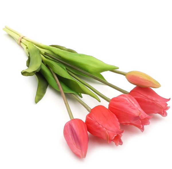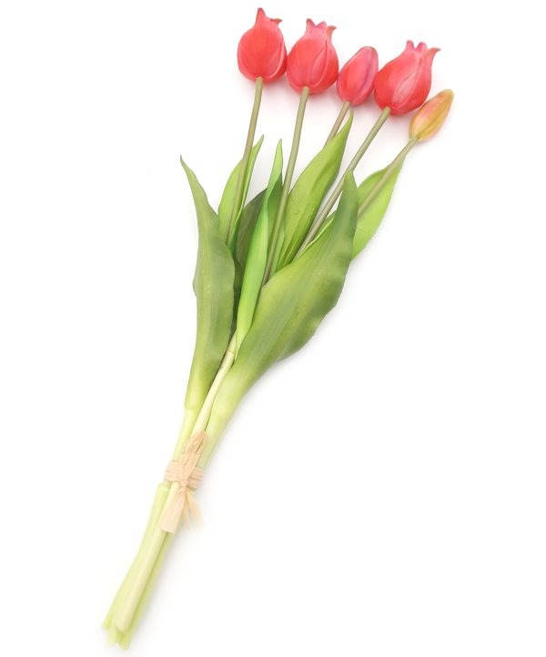 4. Tulipany silikonowe jak żywe różowe bukiet 5 sztuk gumowe 39 cm