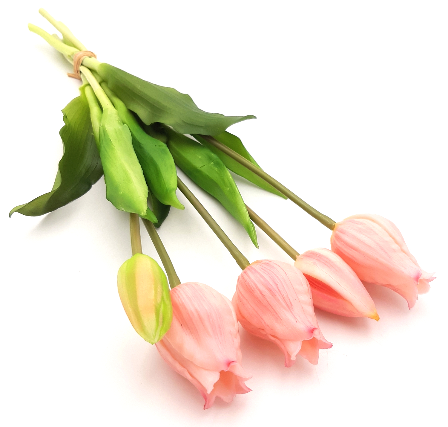 4. Tulipany silikonowe jak żywe różowe jasne bukiet 5 sztuk gumowe 39 cm