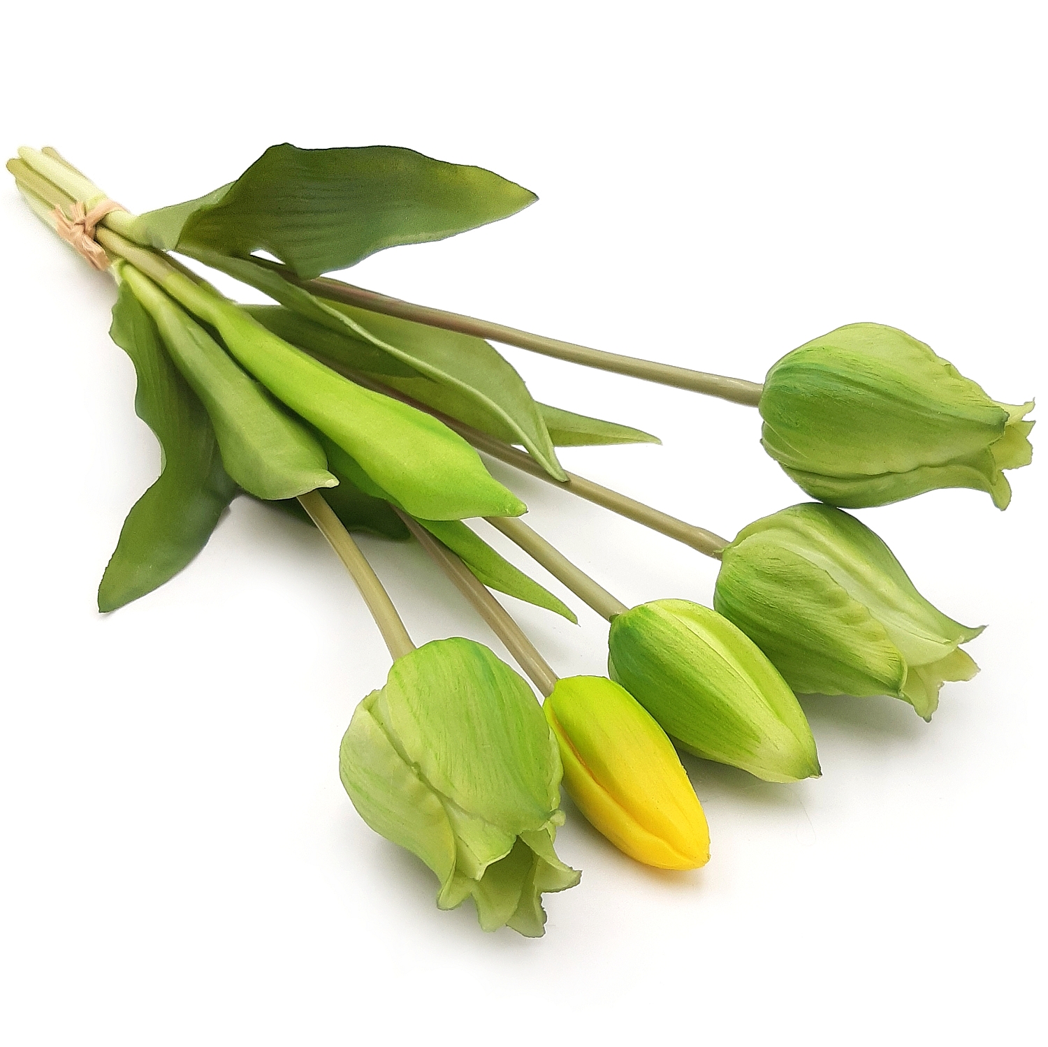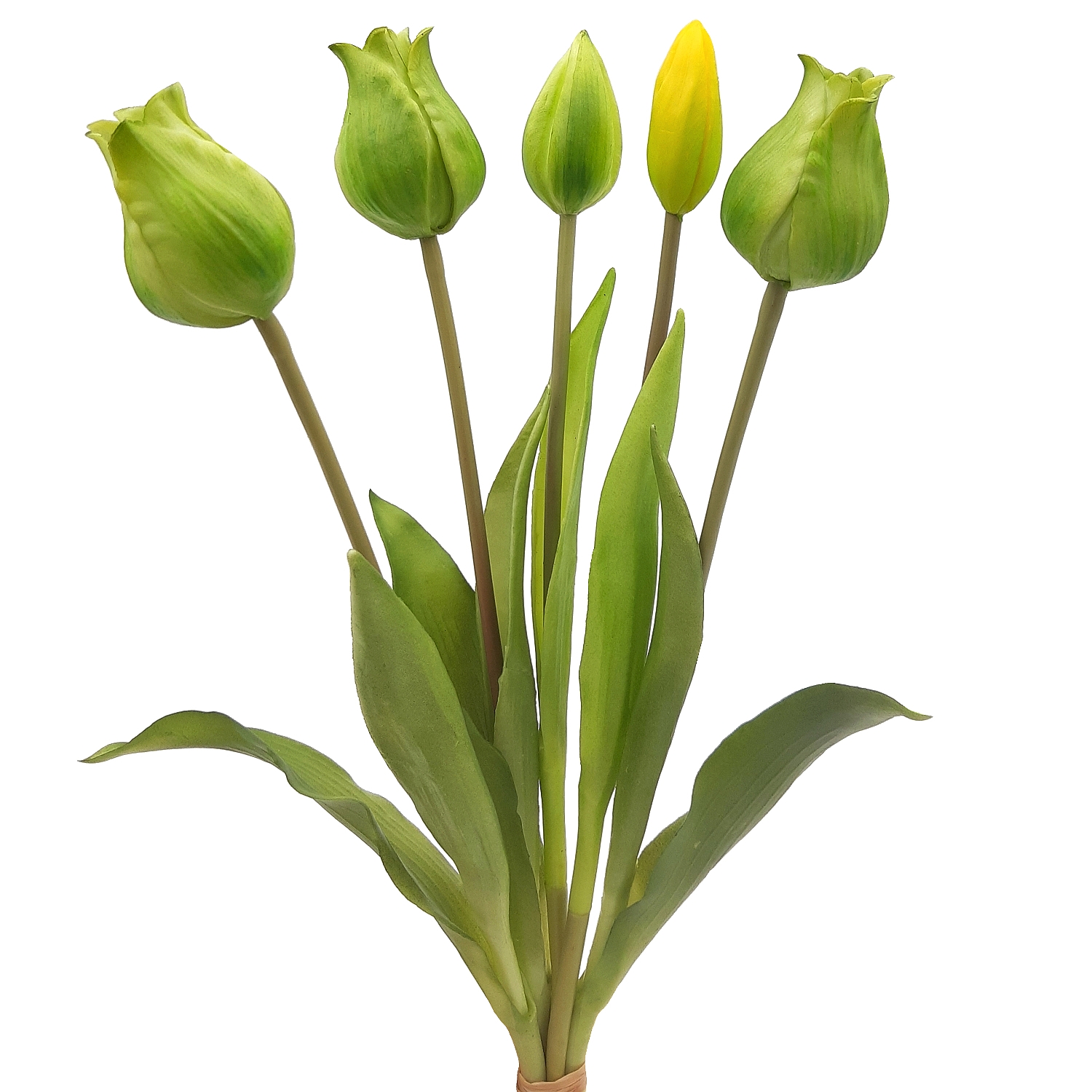 4. Tulipany silikonowe jak żywe zielone bukiet 5 sztuk gumowe 39 cm