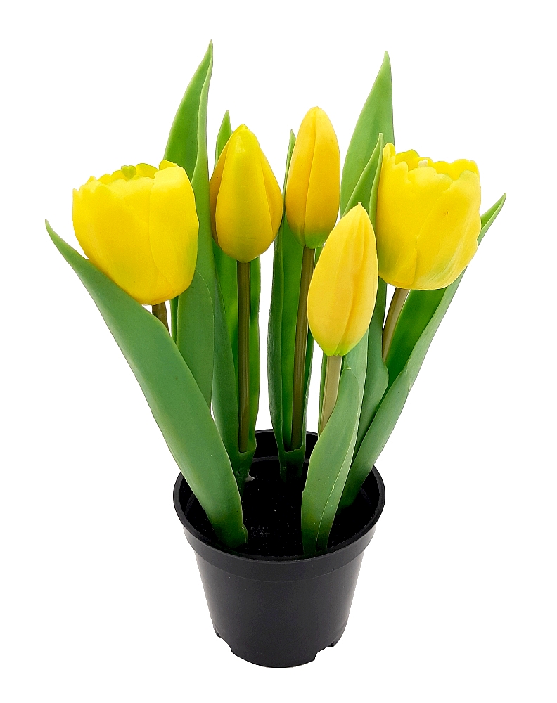 Tulipany silikonowe jak żywe żółte w doniczce 5 sztuk gumowe 24 cm
