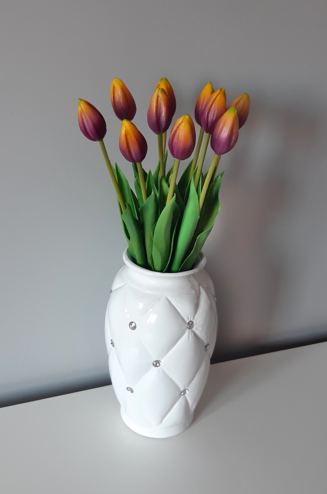 - Klasyczna biel nadają eleganckiego wyglądu przez co wazon doskonale komponuje się z każdym wnętrzem