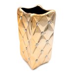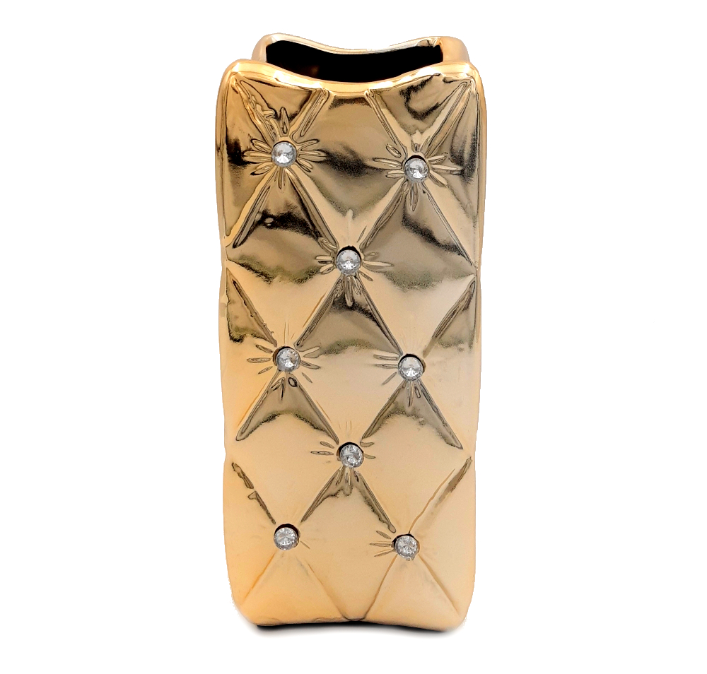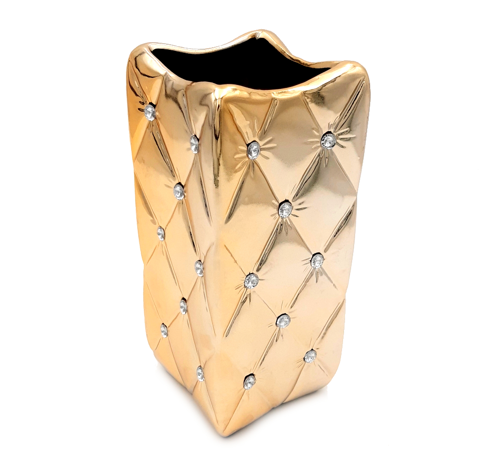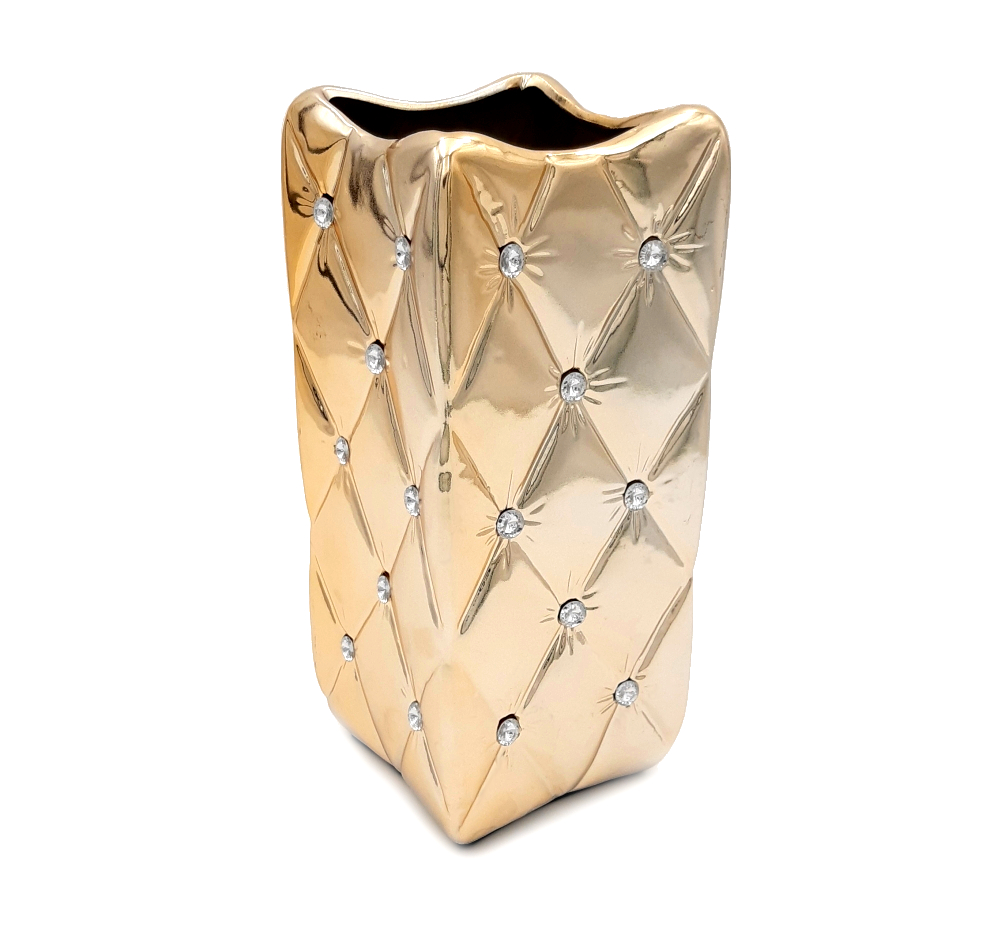 4. Wazon ceramiczny z kryształkami złoty glamour pikowany 25 cm