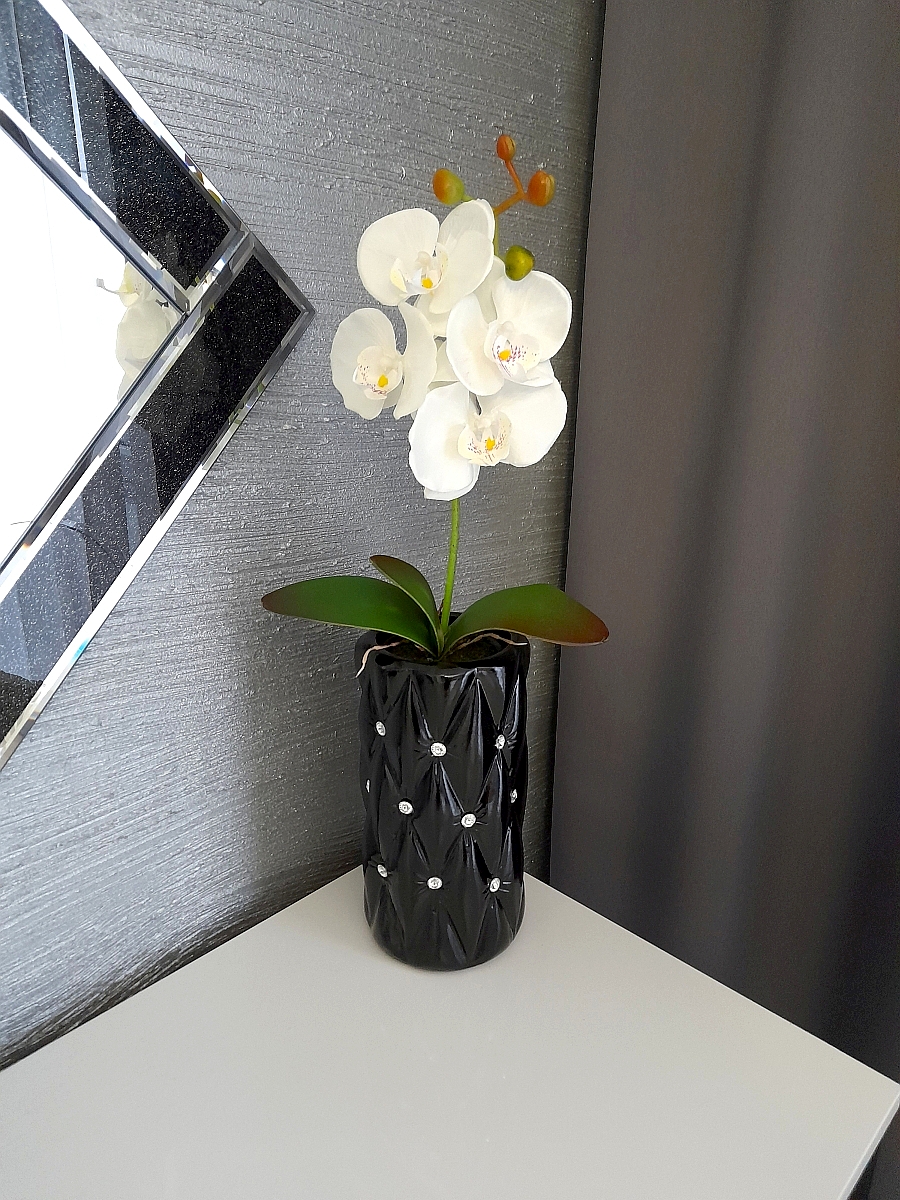 - Klasyczna czerń nadają eleganckiego wyglądu przez co wazon doskonale komponuje się z każdym wnętrzem