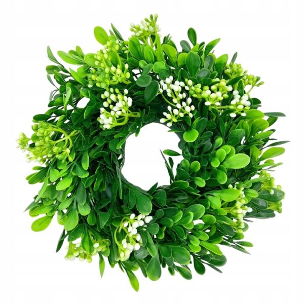 Wianek na drzwi stroik wieniec dekoracja na drzwi zielony z białymi kwiatami 25 cm bukszpan