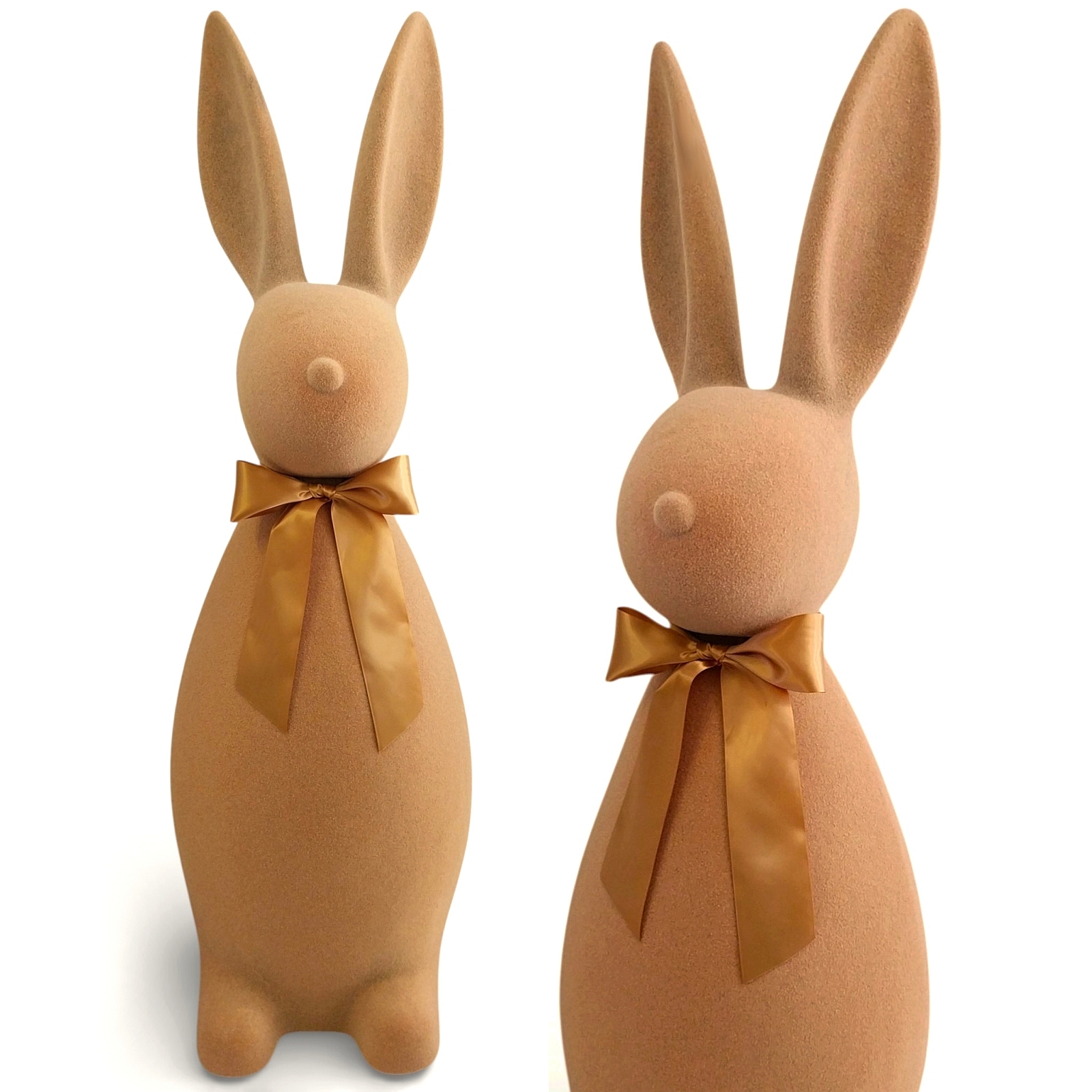5. Zając wielkanocny duży 130 cm brązowy flokowany królik z kokardką dekoracja świąteczna