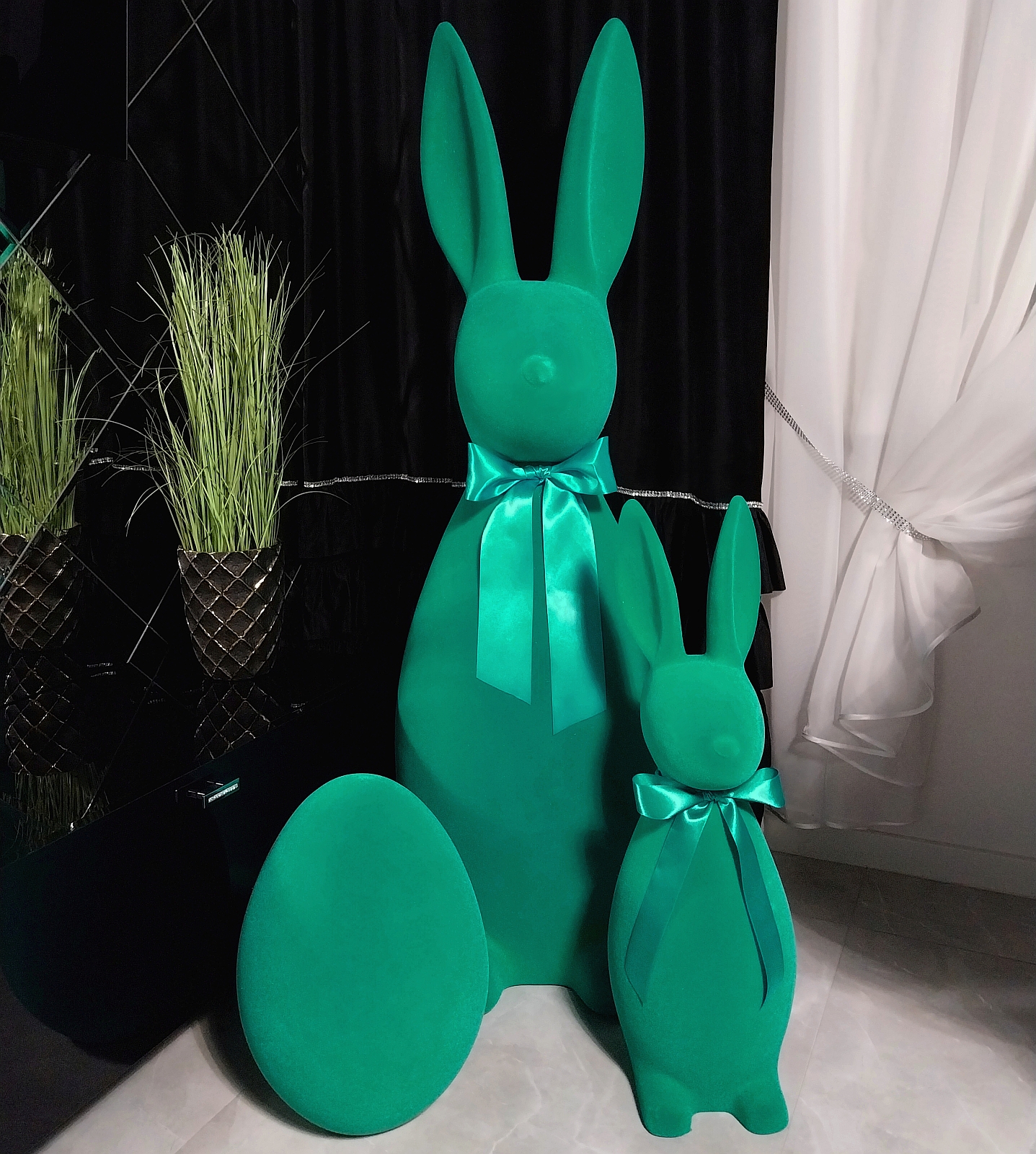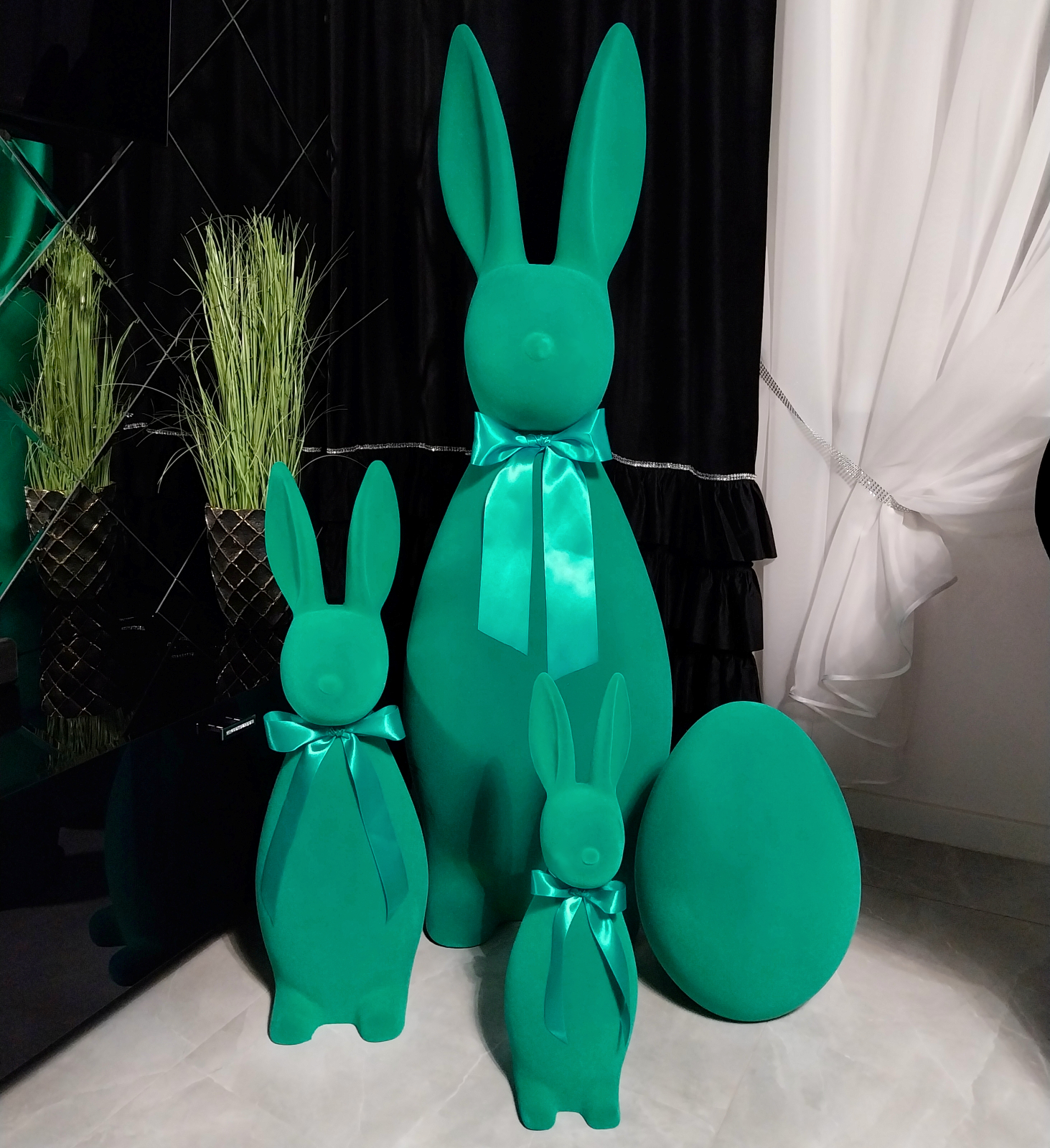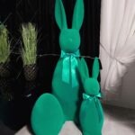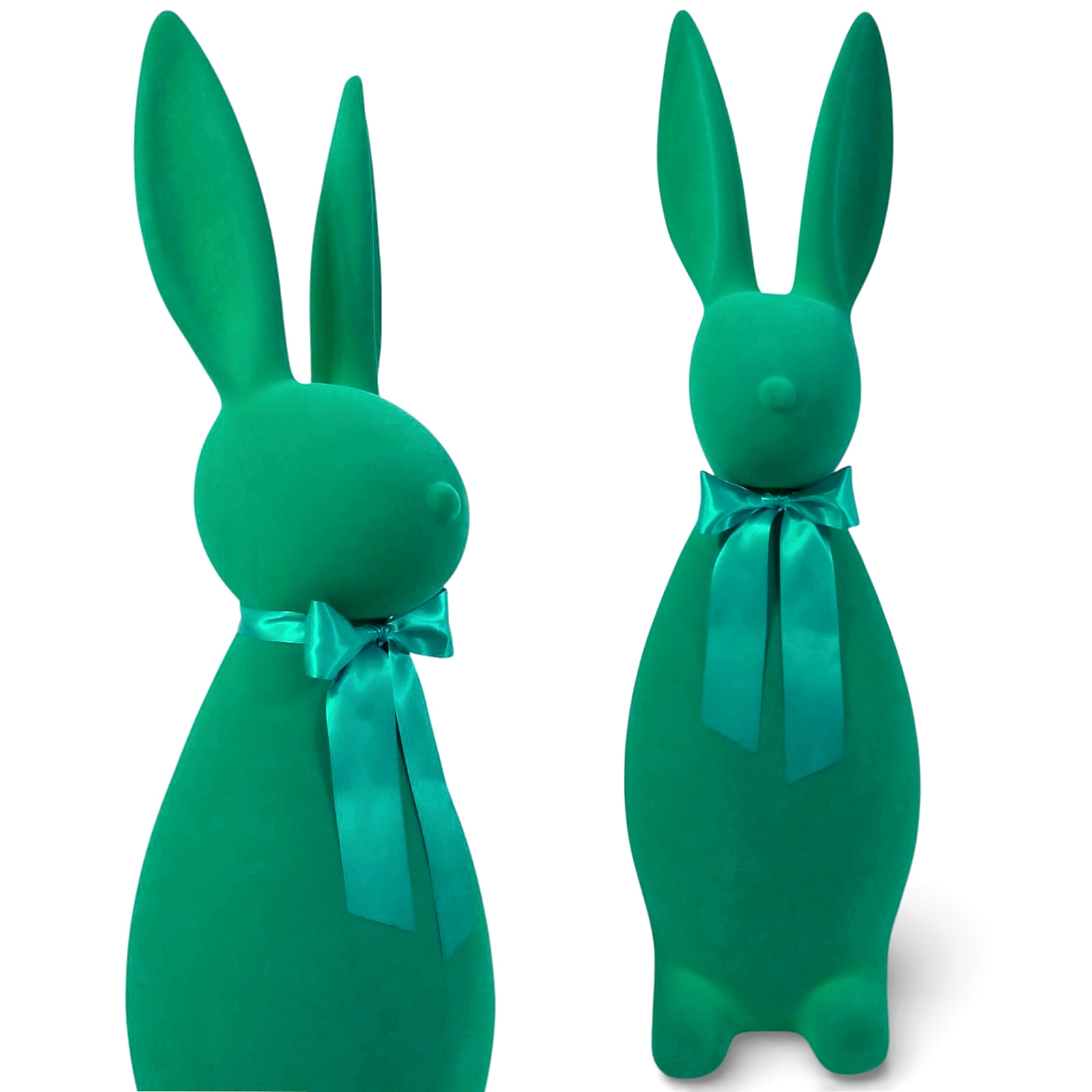 5. Zając wielkanocny duży 130 cm zielony flokowany królik z kokardką dekoracja świąteczna