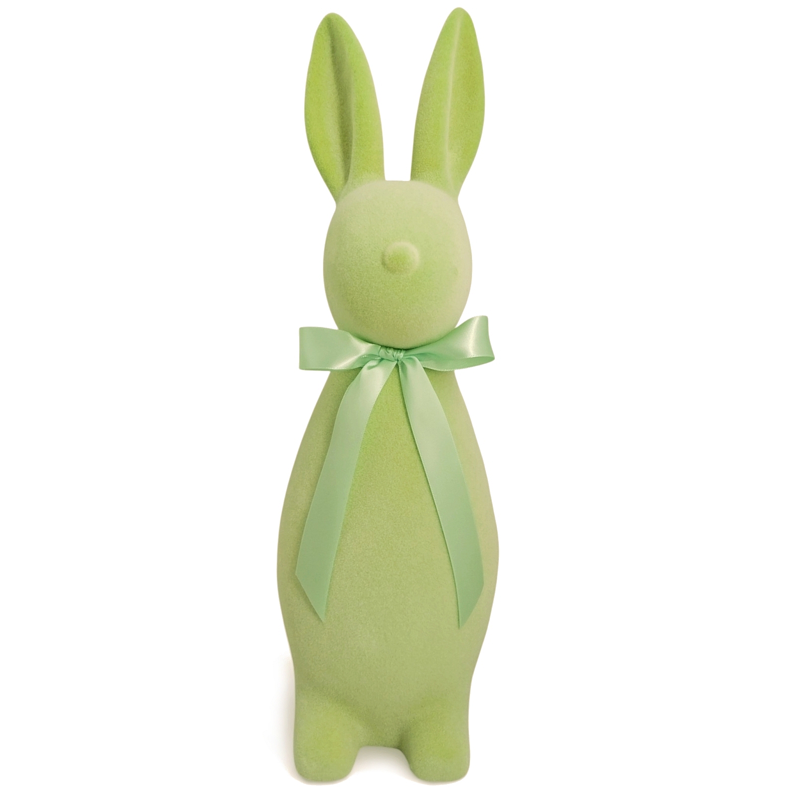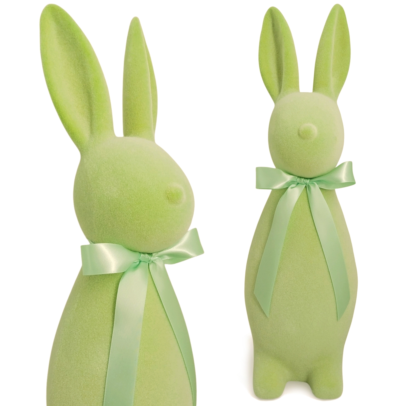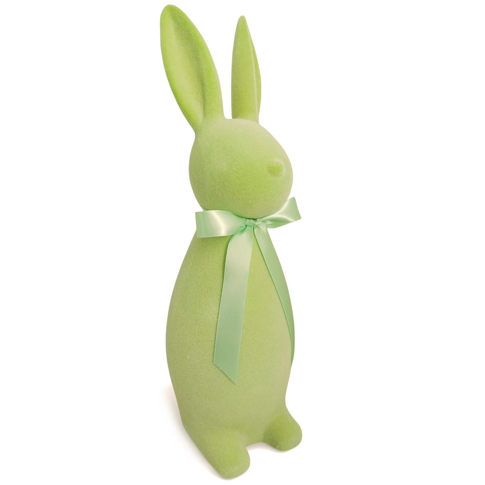 5. Zając wielkanocny limonkowy flokowany królik z kokardką dekoracja świąteczna 45 cm