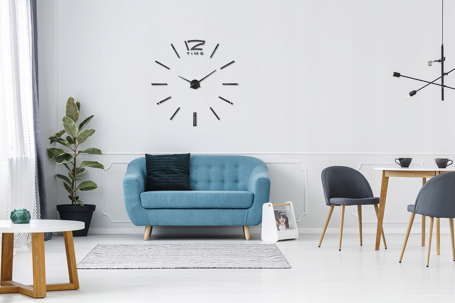 - Dzięki samoprzylepnym częściom i obrazkowej instrukcji montaż zegara na ścianie jest bardzo łatwy